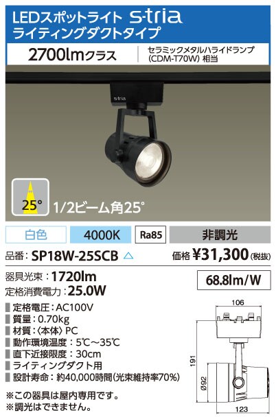 SP18N-25SCB S-triaCOBスポットライト SP18 25°5000K 調光非対応