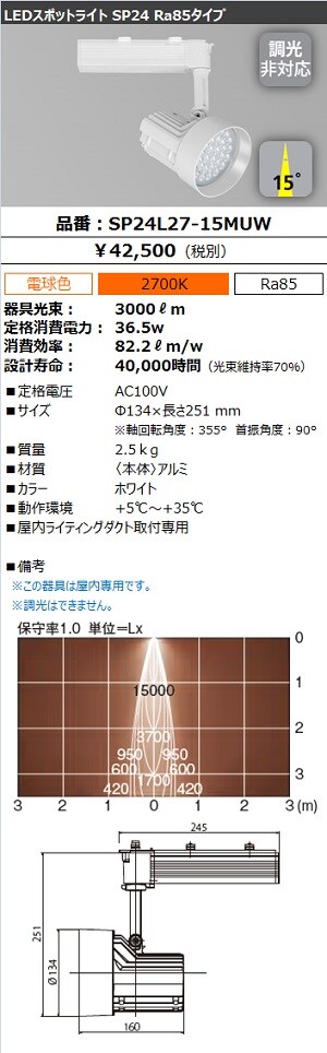 SP15L30-30UCW LEDスポットライトCOB 1/2配光角30°3000K 調光非対応