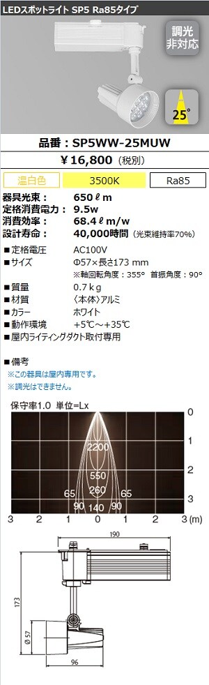 SP9N-20UCB LEDスポットライトCOB 1/2配光角20°5000K 調光非対応