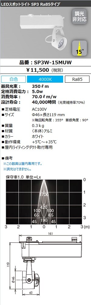 SP15WW-30UCB LEDスポットライトCOB 1/2配光角30°3500K 調光非対応