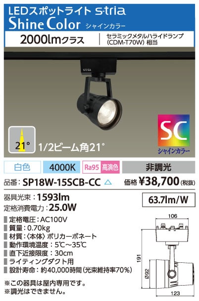 S-triaCOBスポットライトシャインカラー SP18 15°4000K 調光非対応