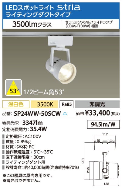 S-triaCOBスポットライト SP24 50°3500K 調光非対応