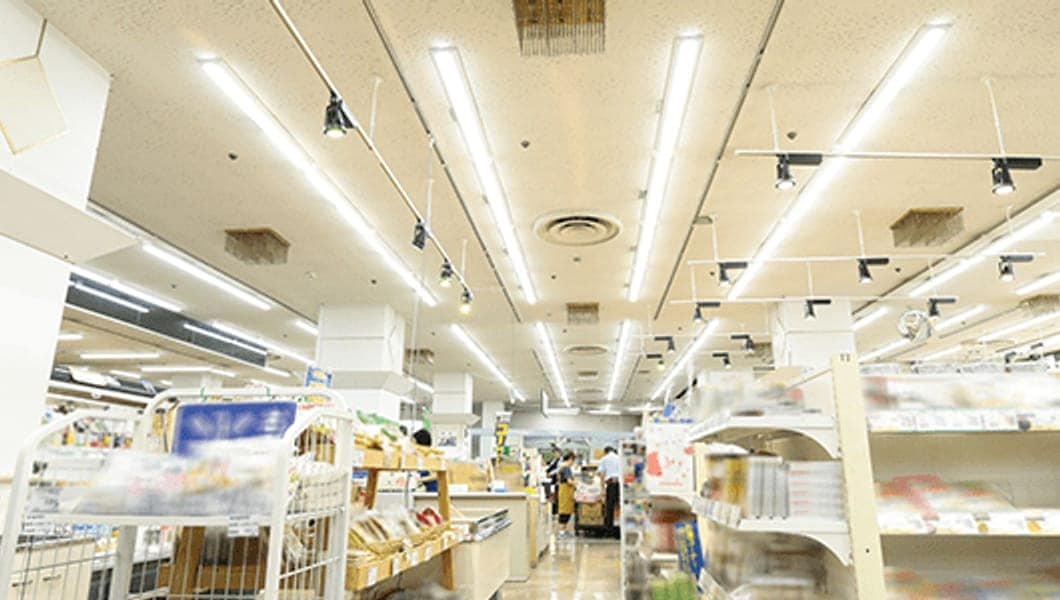 一体型ベースライト / 直管LEDランプ / 非常灯・誘導灯 / ダウンライト / スポットライト / 高天井用照明 / 投光器・看板照明 / 道路照明 / 住宅照明 / 無線制御システムLiCONEX / LIDIOシリーズ / 基本デザイン設計 / 内装工事 / 床材 -