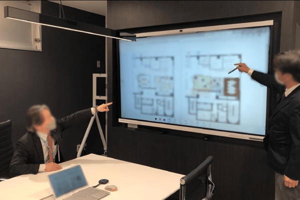 会議中の共有資料を大画面に映し出しながら議論を進められる環境を整えています。シンプルな操作性とスタイリッシュなデザインが評価され、オフィスに取り入れやすいデジタルホワイトボードとして活用されています。
