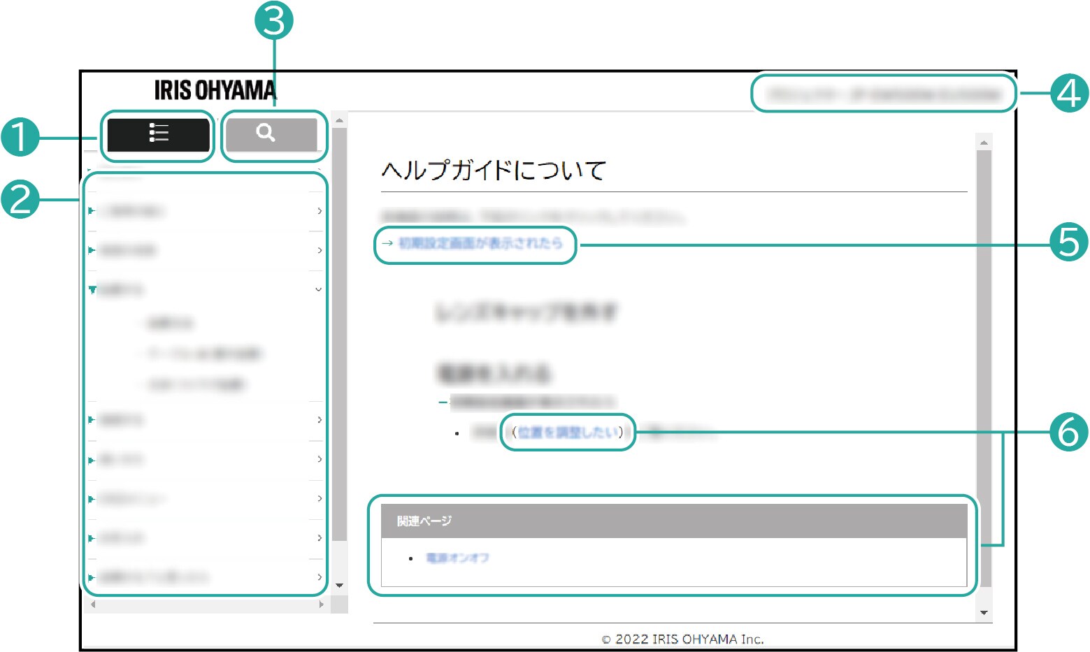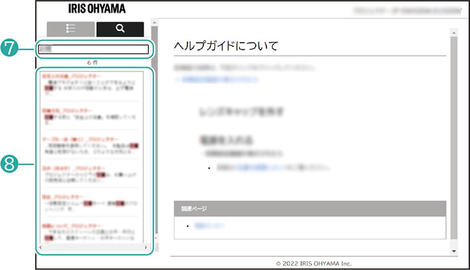 選択すると、ヘルプガイド内の該当ページが表示されます。
