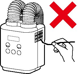 • ノズル(吹き出し口)や吸気口に指や金属などの異物を入れない