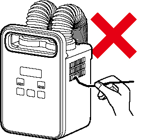 • ノズル(吹き出し口)や吸気口に指や金属などの異物を入れない