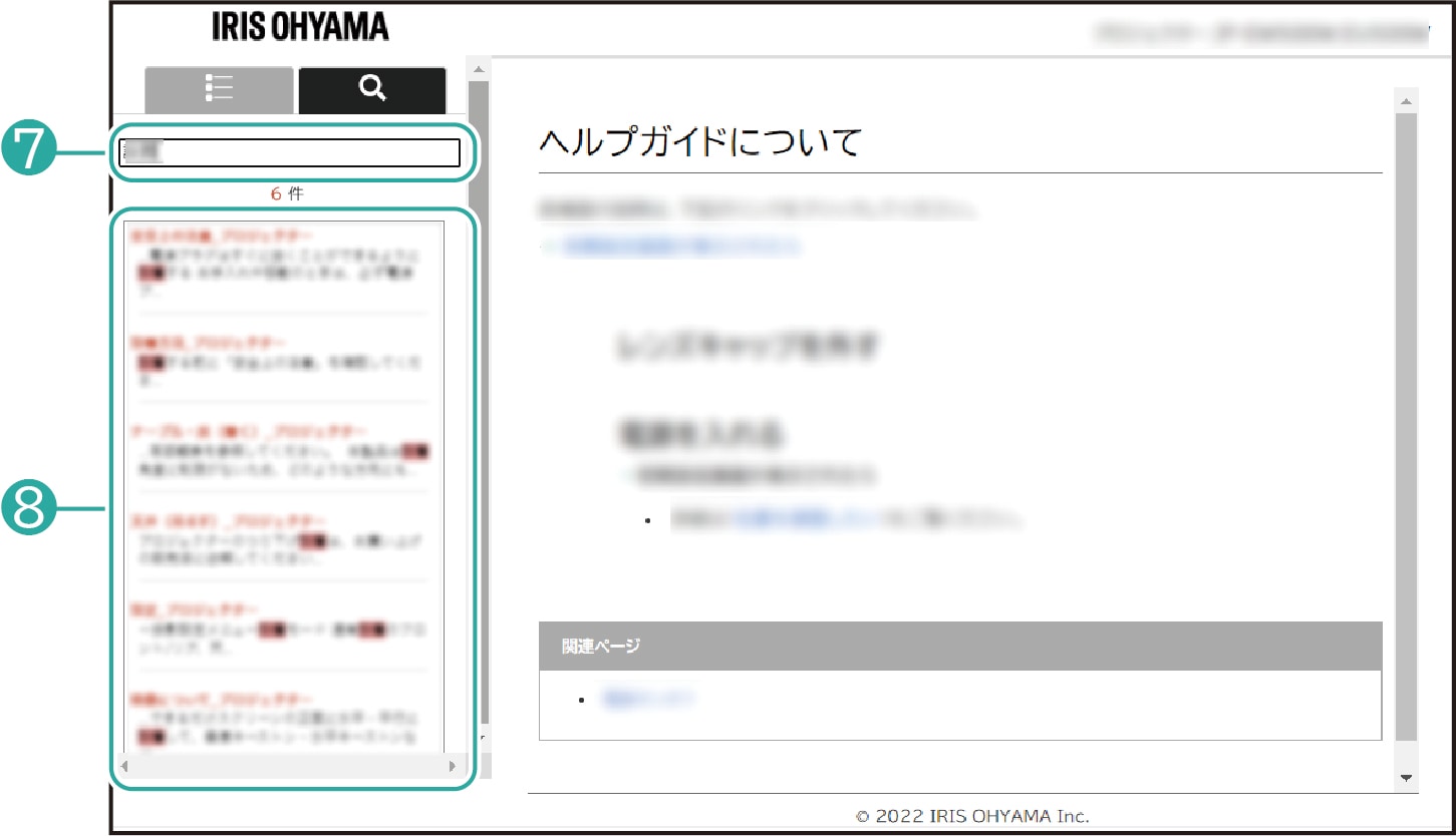 検索した結果が表示されます。選択すると、ヘルプガイド内の該当ページが表示されます。