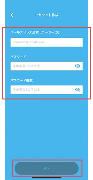 - 利用規約に同意するのチェックマークを付けて頂くと「次へ」ボタンをタップ頂けます。