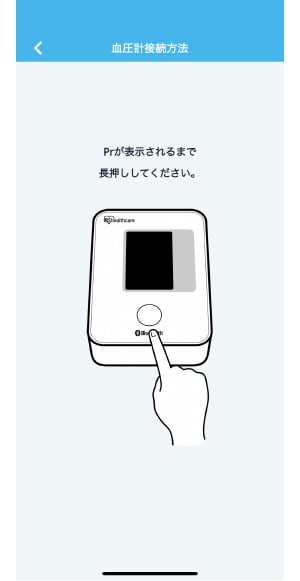 - ②血圧計本体の電源を入れ、接続できる状態にします。