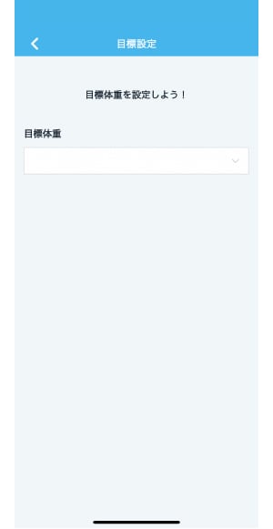 - 目標体重のをタップし、数値入力をしてください。「<」ボタン をタップすると目標設定が反映されます。