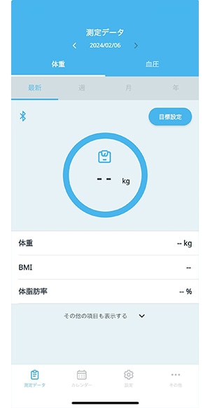 - ⑥接続が完了した通知が出れば体重データ画面に移動します。