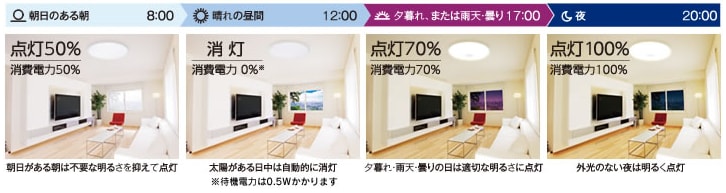設定した明るさに対する不足分のみの点灯となるので、効率よく省エネができます。