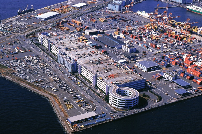 横浜港三大ふ頭のひとつである大黒ふ頭にある、延床面積32万?の国内最大級の総合物流施設。物流棟の東西両端にランプウェイを設置し、各階まで大型車両の乗り入れが可能。倉庫は全天候型で24時間稼働、震度7クラスまで耐えられる耐震構造など、物流拠点としての高い機能を備えます。1996年開業。