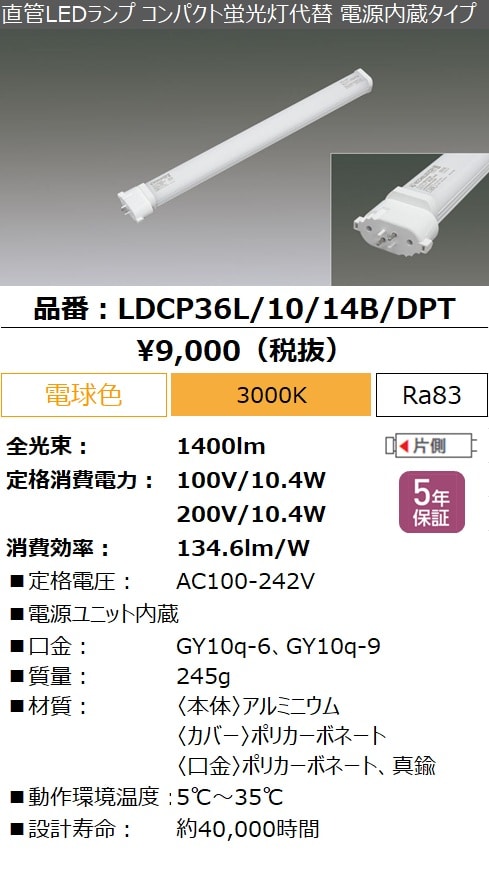直管LEDランプ コンパクト蛍光灯代替 電源内蔵タイプ