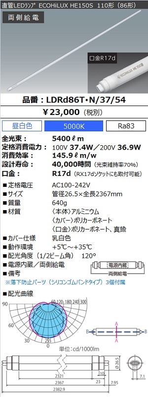 [生産終了] 直管LEDランプ ECOHiLUX HE150S(両側給電)