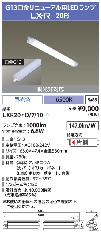 [生産終了] G13口金リニューアル用LEDランプLX-R 20形【片側給電】