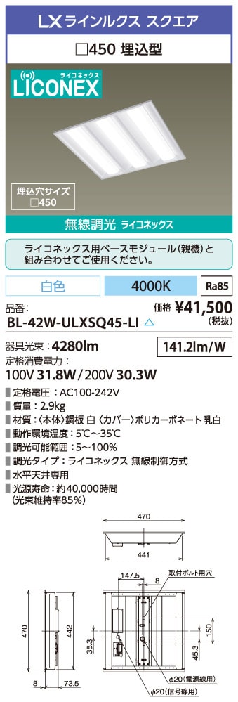 LXスクエア照明埋込型 □450 LiCONEX調光