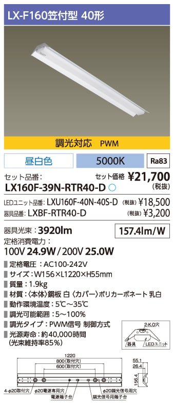 ラインルクス 笠付型 PWM調光 40形