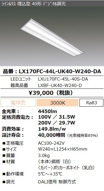 ラインルクス 埋込型 DALI調光 40形 幅220