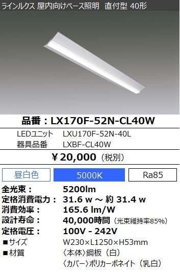 [生産終了] ラインルクス 直付型 非調光 40形 幅230
