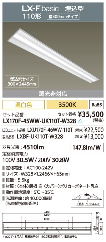 [生産終了] ラインルクス 埋込型 非調光 110形 幅300