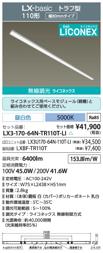 施設・店舗向け 屋内向け ベース照明 トラフ型