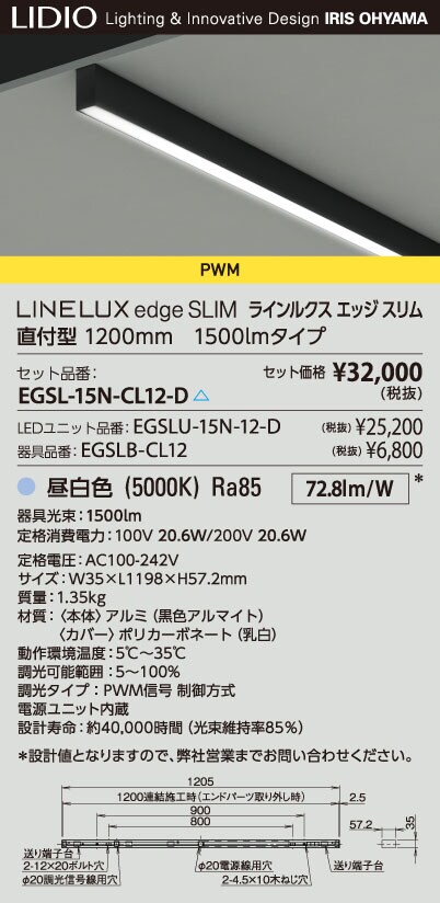 LIDIOラインルクスエッジスリム 直付型 PWM調光 1200mm