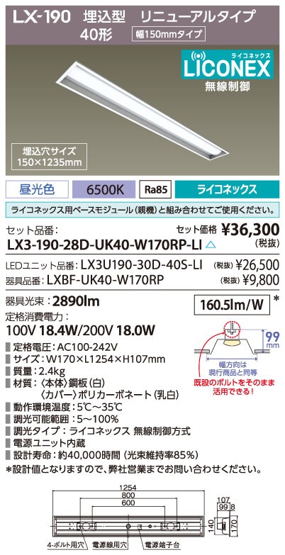 ラインルクス 埋込型 リニューアルタイプ LiCONEX調光 40形 幅150