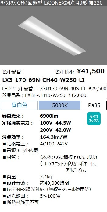 ラインルクス 埋込型 Cチャンネル回避型 LiCONEX調光 40形 幅220