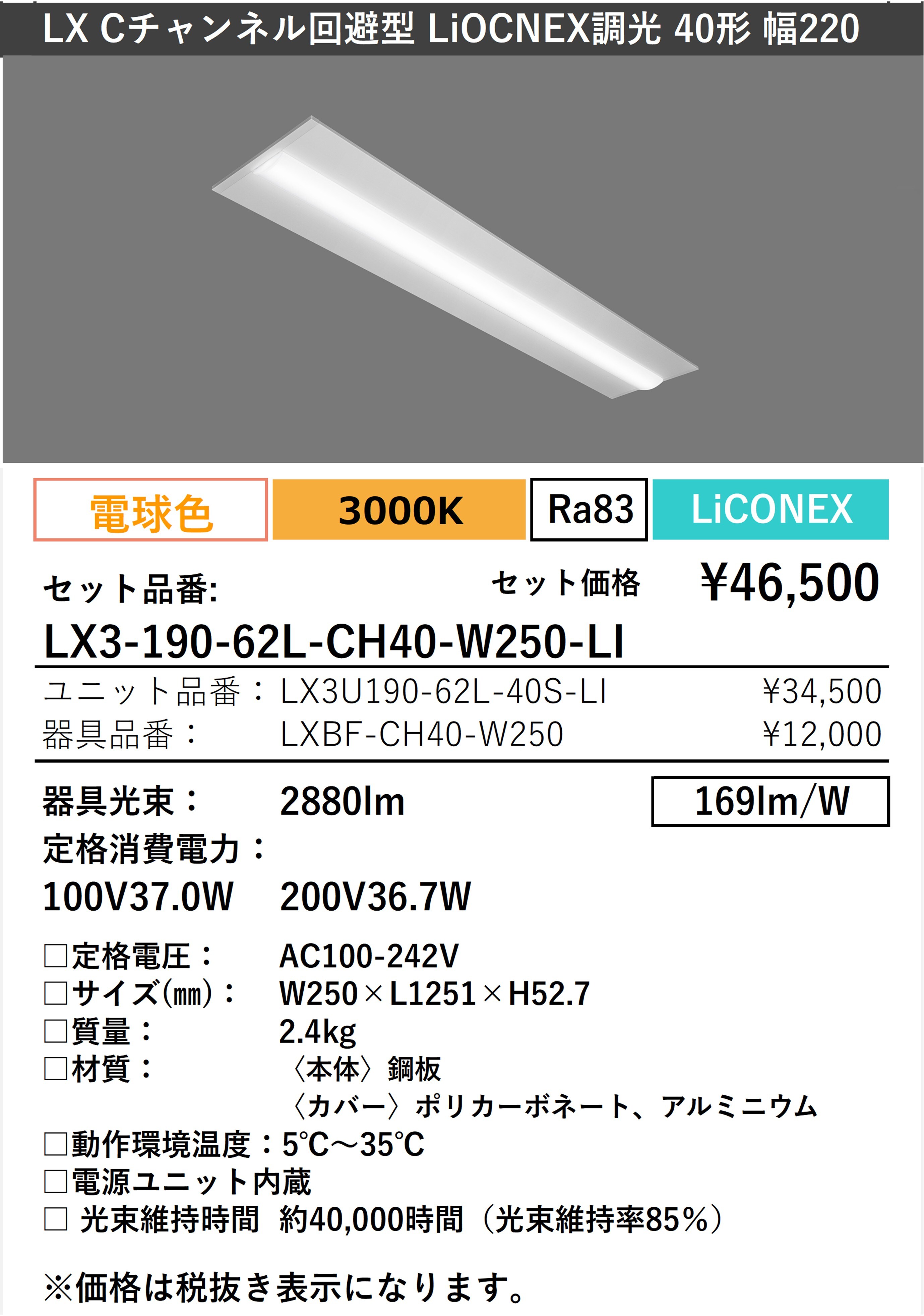 ラインルクス 埋込型 Cチャンネル回避型 LiCONEX調光 40形 幅220