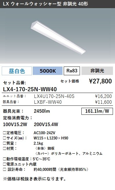 ラインルクス ウォールウォッシャー型 非調光 40形