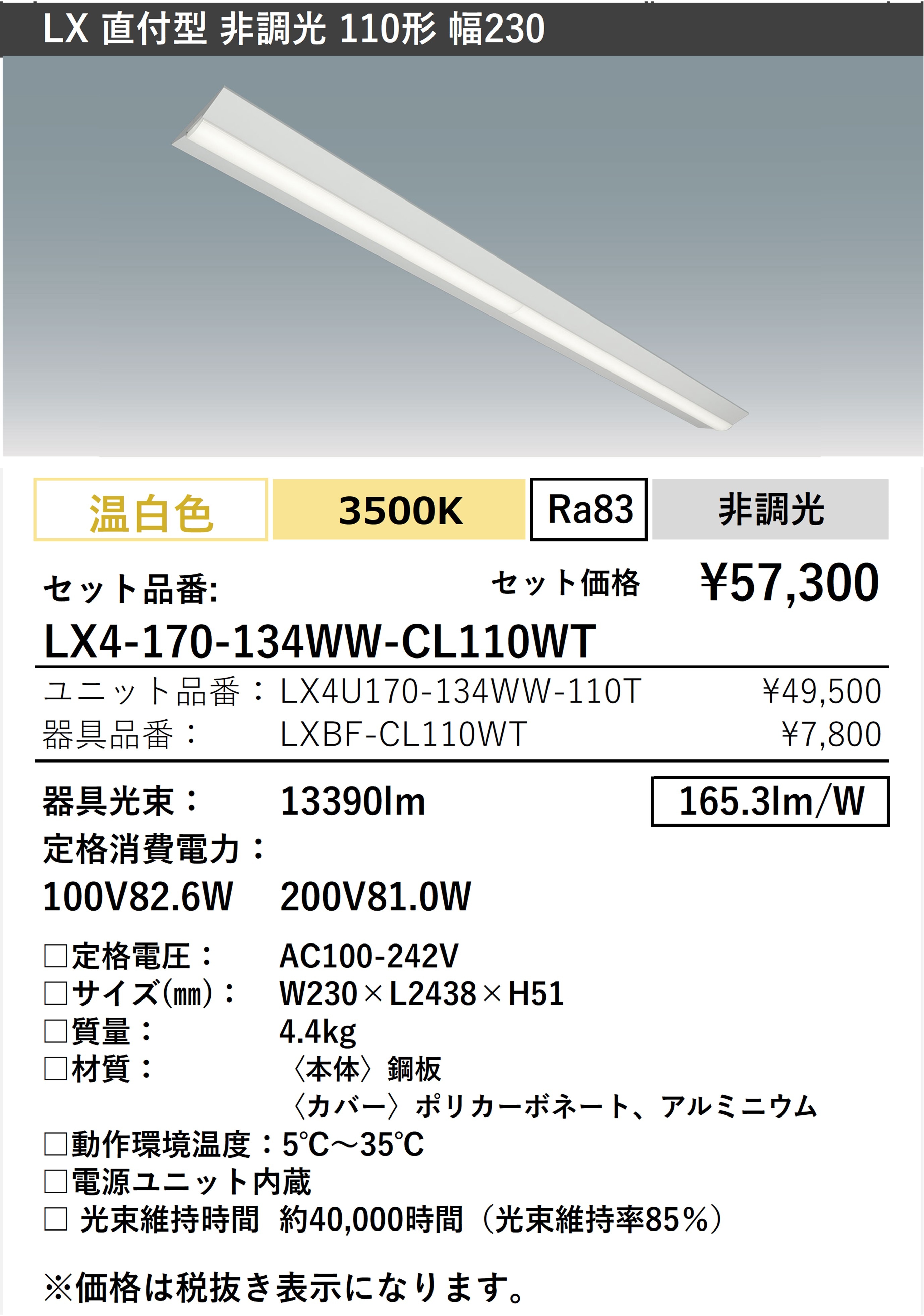 - 器具光束 13390lm