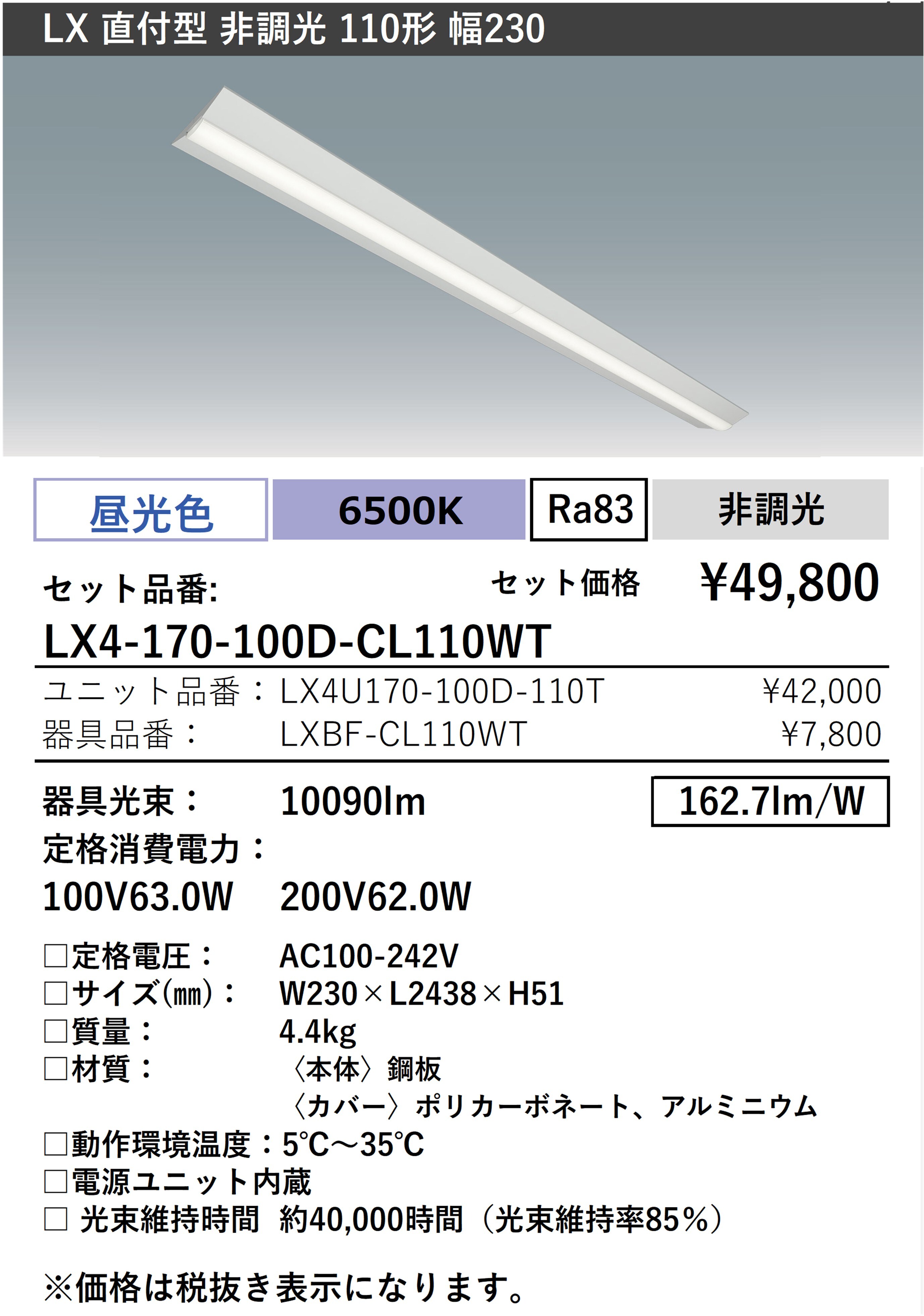 - 器具光束 10090lm
