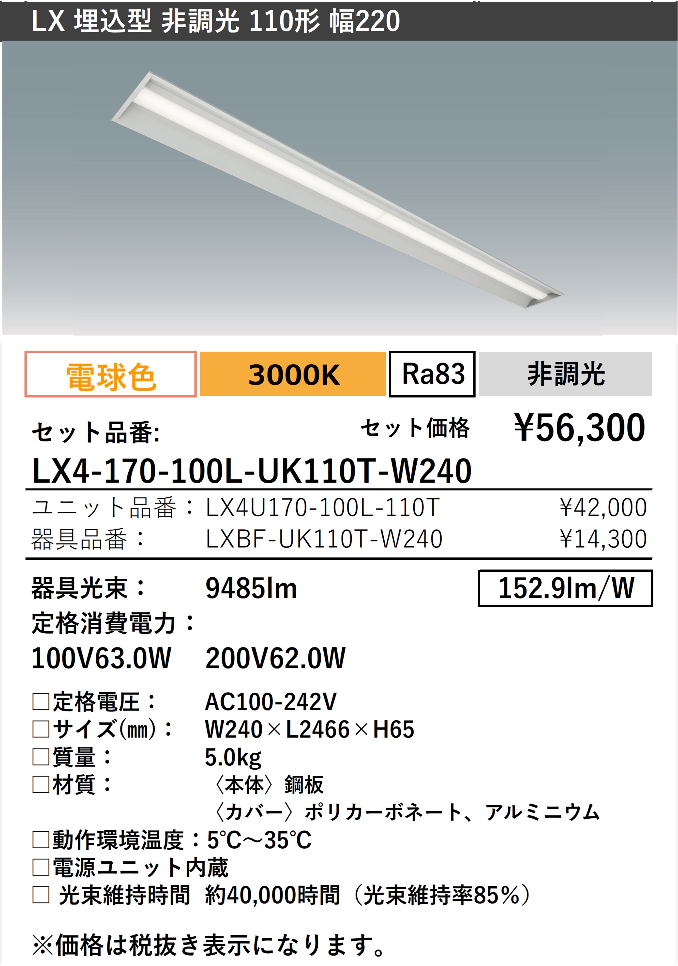 - 器具光束 9485lm