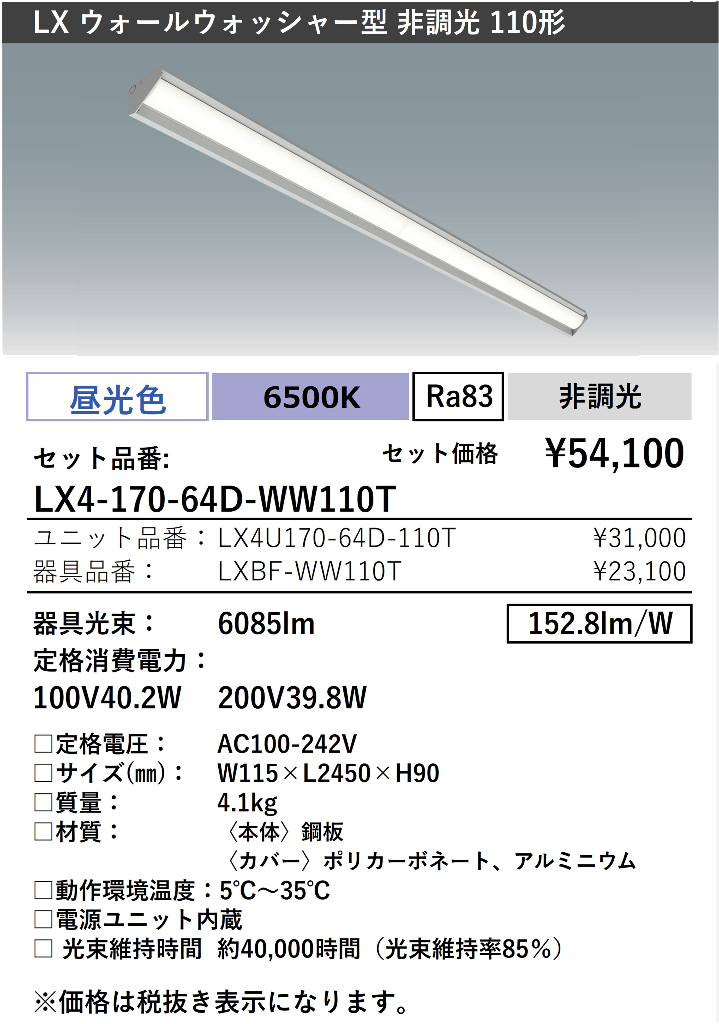 - 器具光束 6085lm