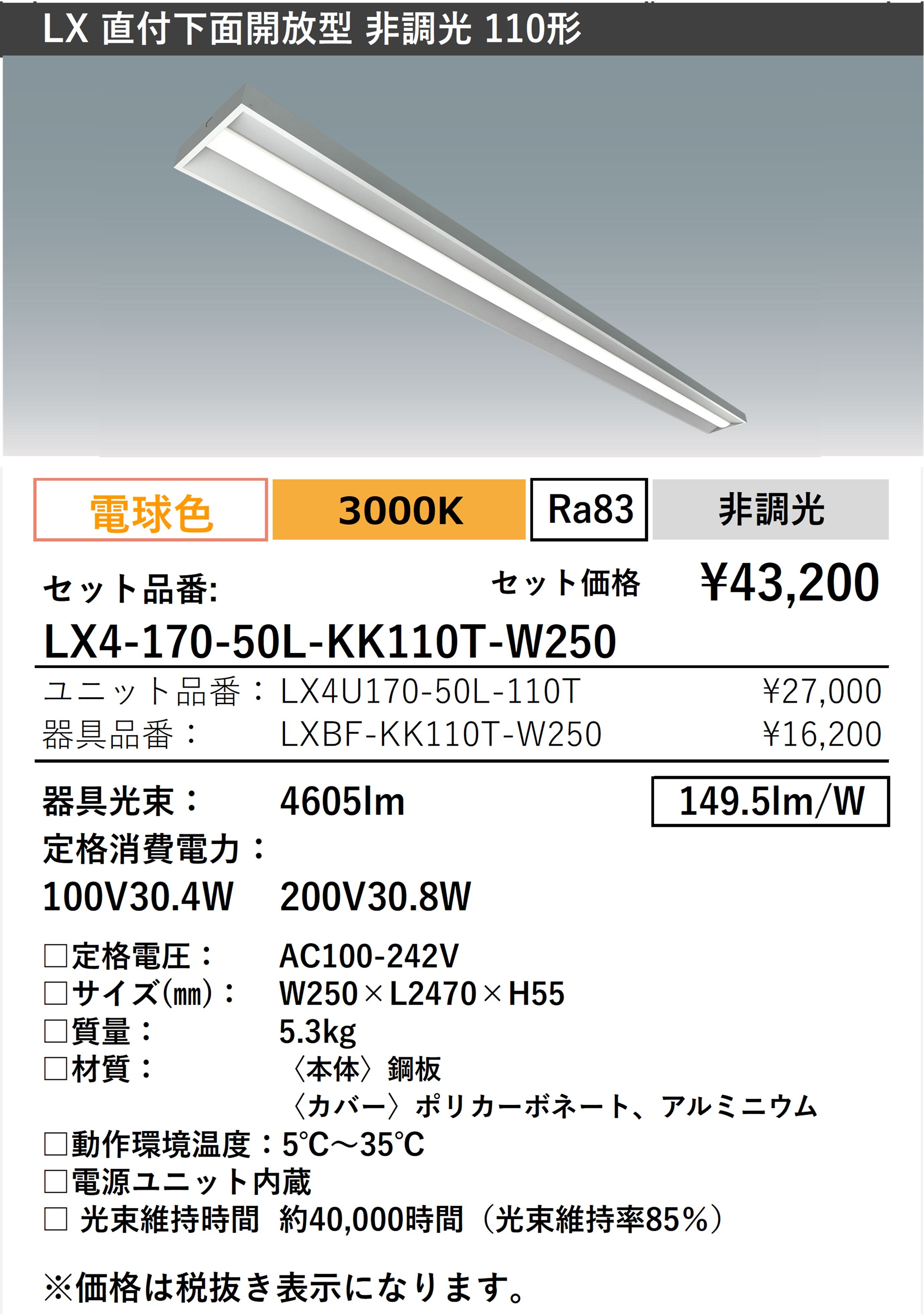 - 器具光束 4605lm