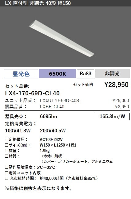 LX4-170-69D-CL40 ラインルクス 直付型 非調光 40形 幅150
