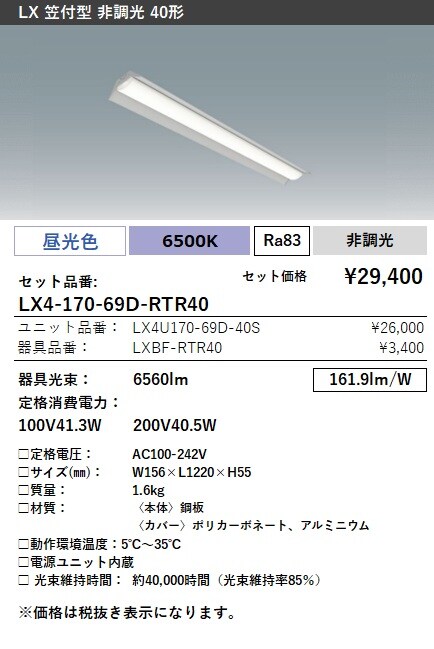LX4-170-69D-RTR40 ラインルクス 笠付型 非調光 40形