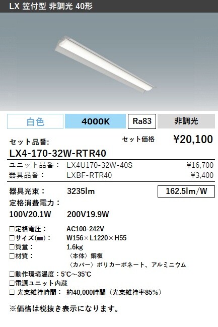 LX4-170-32WW-RTR40 ラインルクス 笠付型 非調光 40形