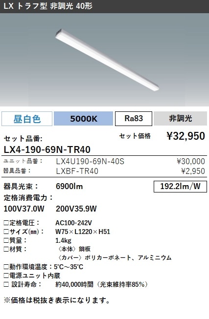 LX4-190-69L-TR40 ラインルクス トラフ型 非調光 40形