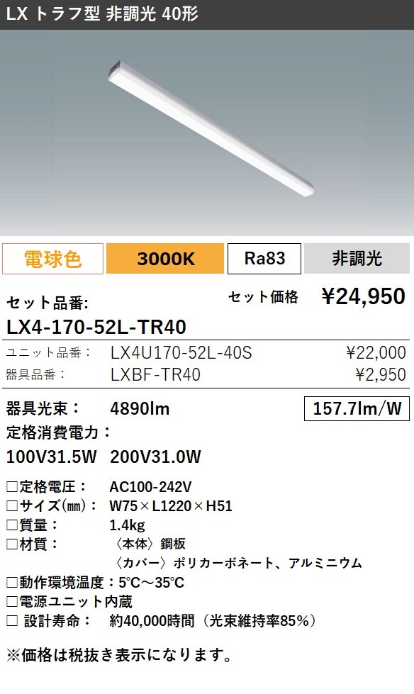 LX4-170-52L-TR40 ラインルクス トラフ型 非調光 40形