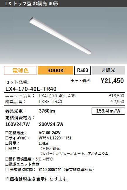 LX4-170-40N-TR40 ラインルクス トラフ型 非調光 40形