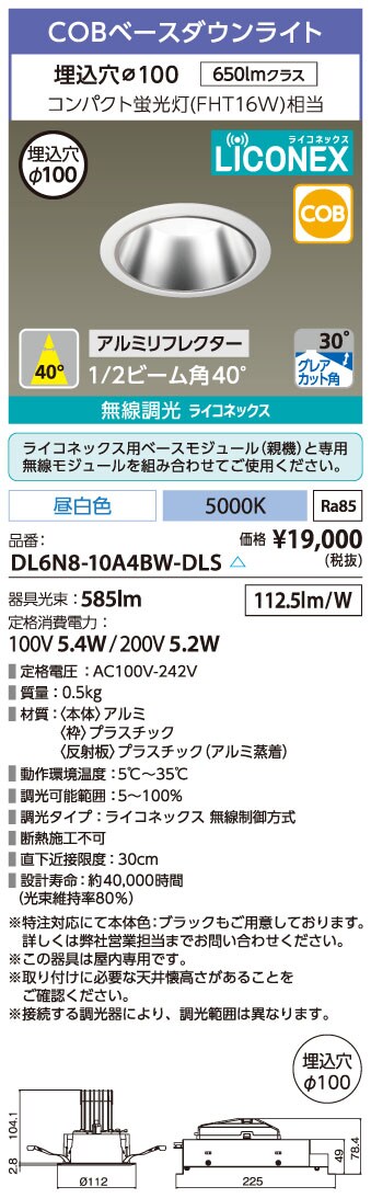 DL6N8-10A4BW-DLS LEDベースダウンライトφ100 LiCONEX