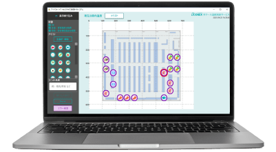 ご要望に合わせてお客様オリジナルのレイアウトを作成※し、画面内に表示します。各冷ケースの位置を確認するのに便利です。画面内で拡大や縮小も可能です。