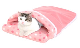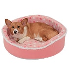 フリース素材を使用したシリーズです。暖かく可愛らしいピンクドットとお部屋に馴染みやすいブラウンドットの2つの柄で展開します。ペットがくつろいだときの姿勢にフィットするような形状になっています。