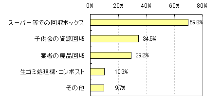牛乳パックなどを店頭で回収しているBOXを利用している方は約70%と高く、ゴミをできるだけ減らそうという動きが見られます。