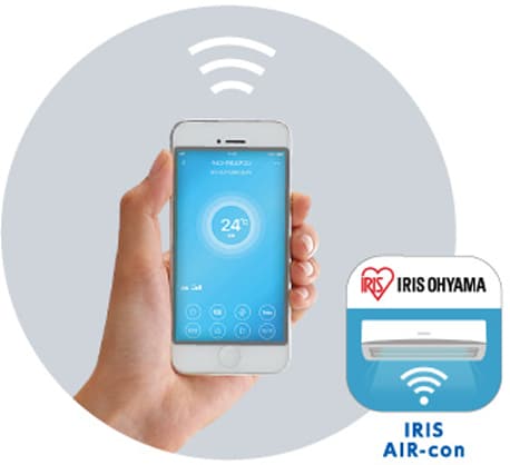 専用アプリ「IRIS AIR-con」を使用することで、スマートフォンから簡単に電源のオン・オフや睡眠中の温度設定など、生活リズムに合わせた細かな温度環境設定ができます。