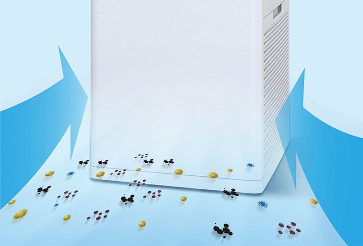 ・HEPAフィルター搭載でウイルスは99%以上除去※6でき、たばこの煙などに含まれる0.3μmの粒子は99.97%以上集塵※7できます。
