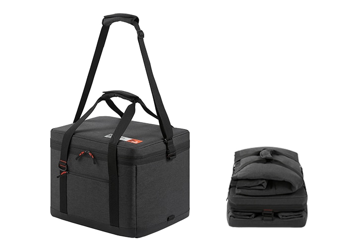 形状は、内容物の出し入れが容易なボックス型で、500mlのペットボトルが40Lタイプで約34本、25Lタイプで約27本※7と大容量を収納できるため、買い物やレジャー、キャンプなどのアウトドアでの使用に最適です。また、使用しない時は折り畳めるのでコンパクトに収納できます。底面には地面から本体を浮かせる5つの脚を搭載し地面からの熱や汚れを防げるだけでなく、保冷剤を入れるインナーポケットや小物収納に便利なアウターポケット、肩掛け用のショルダーベルトが付属しています。